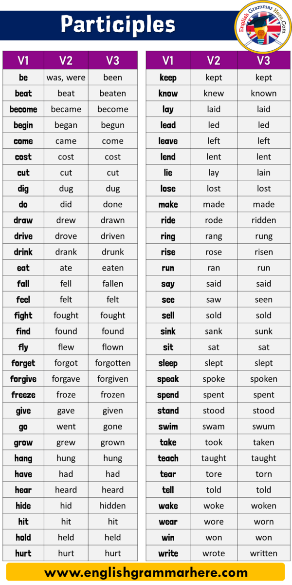 До вашої уваги пропонуємо таблицю із неправильними дієсловами, яка, сподіваємося, стане вам у нагоді.